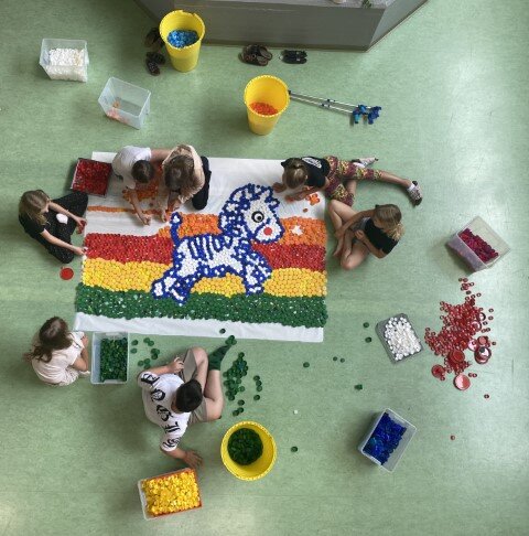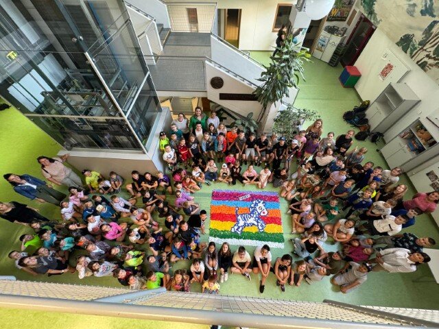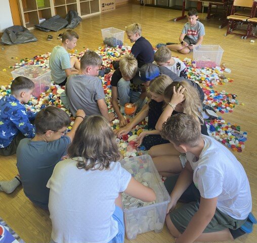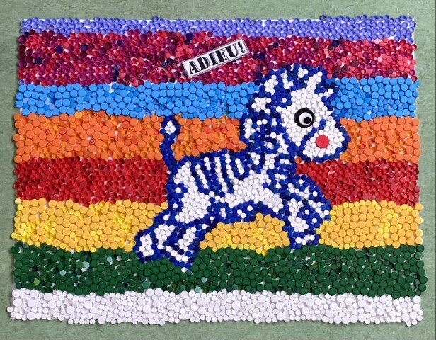 Seit vielen Jahren sammeln die Schülerinnen, Schüler sowie die Lehrkräfte der Josef Friedrich Perkonikg VS 2 in Ferlach fleißig Plastik-Verschlüsse von Tetrapackerln, Getränke- oder Kosmetikflaschen. Bevor die „Stöpsel“ der Recycling-Firma verkauft werden, um Kindern mit besonderen Bedürfnissen Therapien, Operationen oder Krankenhausaufenthalte zu finanzieren kreiert die Lehrerin Kirsten Bärnthaler gemeinsam mit den Schülerinnen und Schülern wahre Kunstwerke. Dieses Jahr wurde in der letzten Schulwoche in der Aula ein Zebra gestaltet.