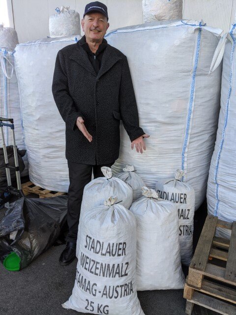 - 52 Säcke lagerten in der Pfarrkirche zur Heiligen Familie in Wels. Danke an Frau Fellinger für die Organisation. Kurt bringt 480 kg nach Roitham am Traunfall und befüllt mit Opa Oberhummer 1 ½ Big Bag's - Lagerstand 4½! DANKE