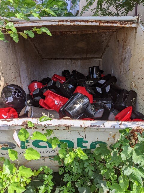 Nach aufsortieren werden die Boxen und Röhren mit dem Vorschlaghammer zerstört. Behältnisse (Kanister, Kübel) werden von Hr. Bruno in Krems geschnitten und alles zerkleinerte Material den Stöpseln beigemischt. Die Transport-Kisten(von TRANSGOURMET) werden geviertelt, die Behälter (Faze) von Meinl in den Big Bag gestellt und mit Stöpseln befüllt. Somit kann ein luftleerer Big Bag gelagert und für den Recycler vorbereitet werden. Haben SIE vielleicht Lust, uns zu unterstützen? Bitte kontaktieren Sie uns.