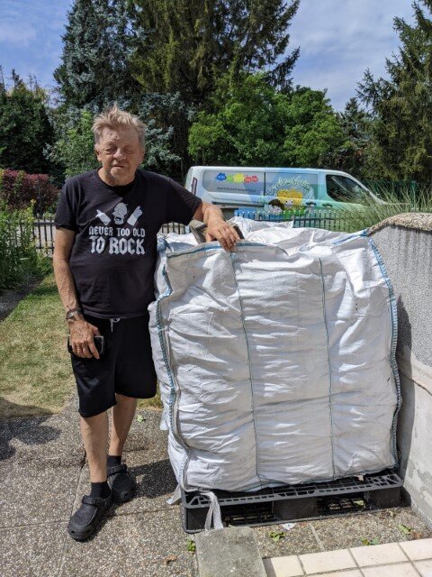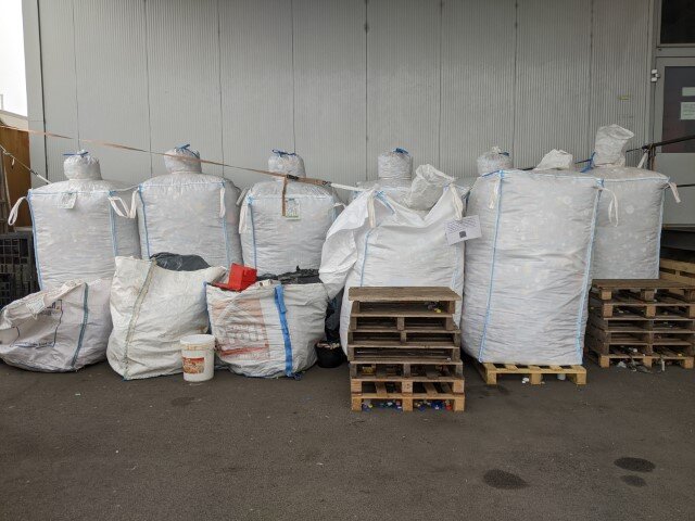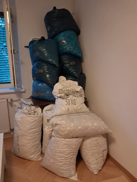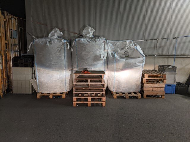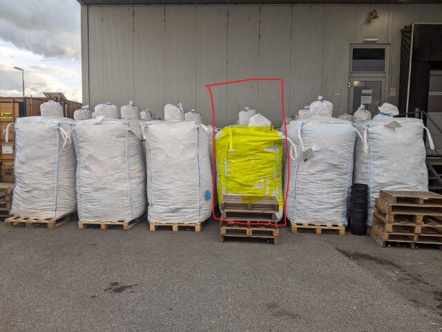 - Derzeitiger Lager-stand in Roitham: 23 ¼ Big Bag, also wird unmittelbar die nächste Abgabe beim Recycler fällig werden.