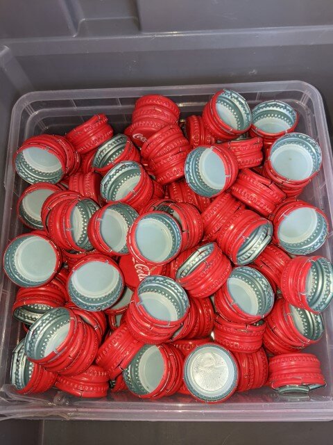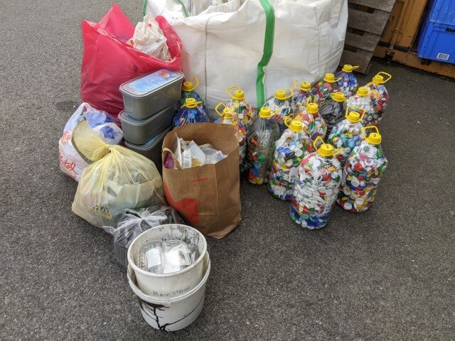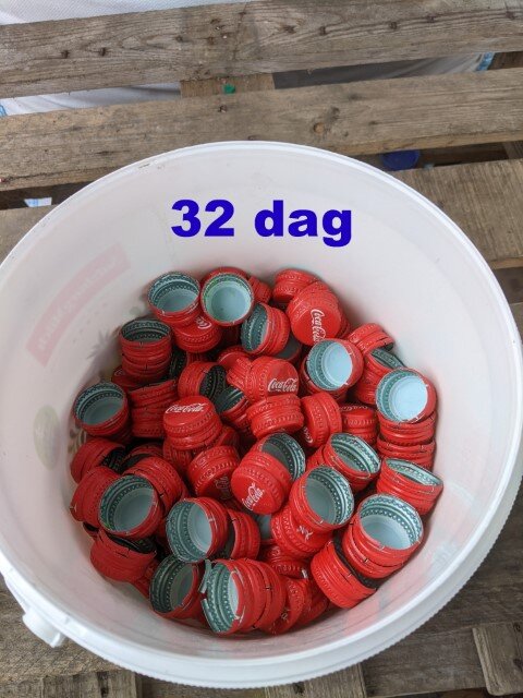 - Nach 63 Tagen haben wir wieder 24 Big Bag bereit zur Abholung, wobei die Getränke-Verschlüsse ca 4.570 kg und das Zusatzmaterial 2.200 kg zu Buche schlagen.