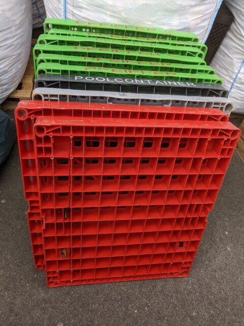 - Übernahme von 10 Fachträgern der Rollbehälter von TRANSGOURMET ergeben (ohne Bockrollen)mehr als 40 kg. Die Rollen und die Metallverstärkung wurde entfernt; es wird noch Big Bag-gerecht zugeschnitten.