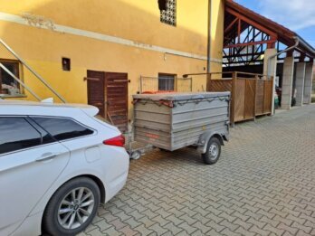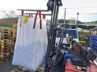 Sandro vom Zadruga Market Bleiburg/Pliberk hob den Riesensack aus dem Anhänger.