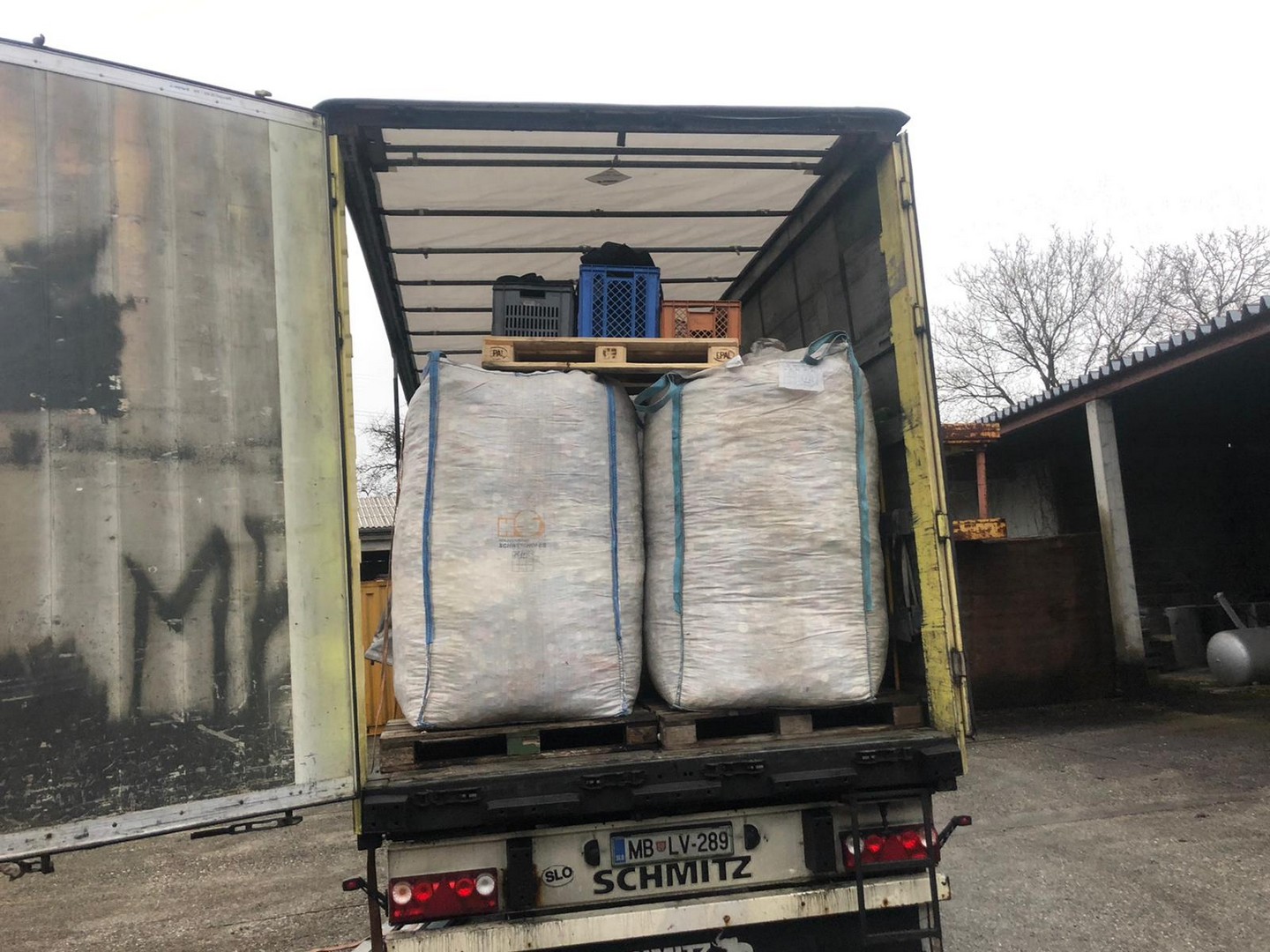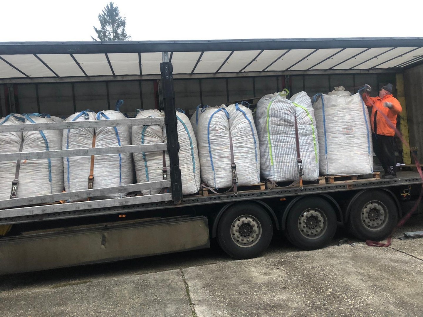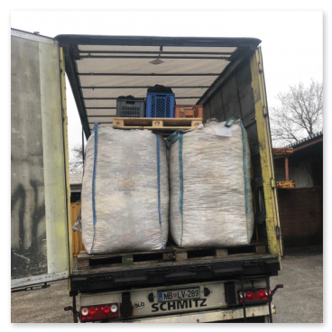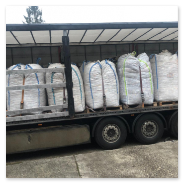 Heute wurde nach kurzer Zeit ím 2. Halbjahr das 2te mal aus Roitham abgeholt. Schon um 8 Uhr früh kam der LKW, Chris Oberhummer ladet 22 Big Bag drauf.